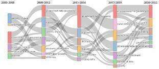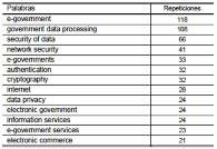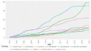 en la Figura 15, se muestra la evolución temática en el periodo estudiado. Hasta 2007, los términos utilizados eran “electronic government ” , “security of data”, “ government data processing”, mientras que, en los últimos años, se han ampliado he introducido nuevos términos como “developing countries”, “information ser vices”” sustainable development”, siendo el más relevante “ e-government ” .