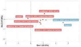 Para terminar el análisis conceptual, se realiza un análisis factorial identificando los artículos más citados y colaborativos en cada gr upo (Figura 18).
