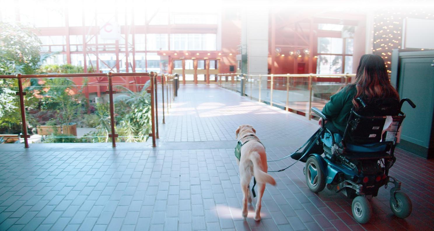 Photo: Carly Neis and her service animal, Gilmore, in the Lee Pavilion.