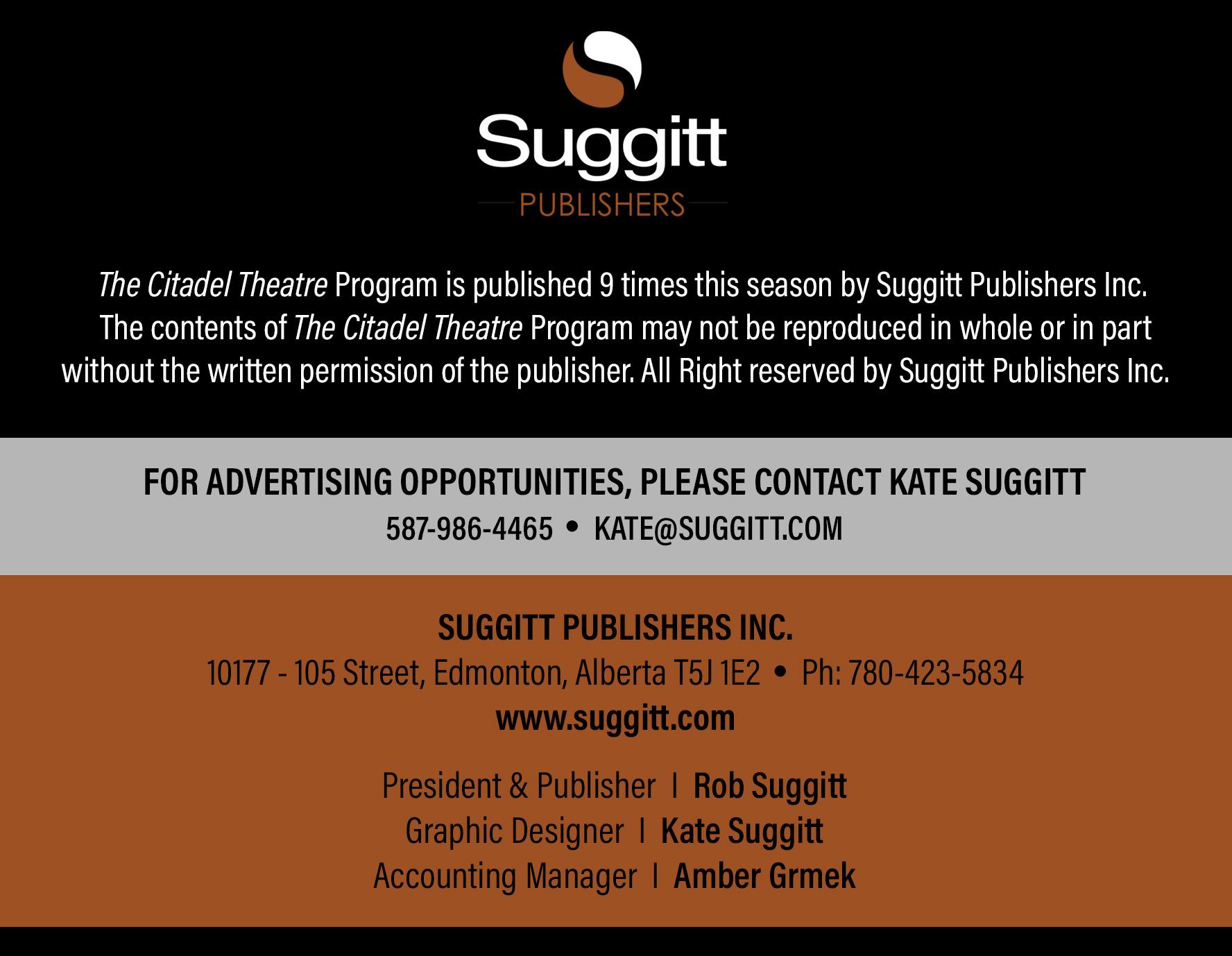 Production personnel for the Citadel Theatre are members of the International Alliance of Theatrical Stage Employees (I.A.T.S.E) *Indicated designers on this production are represented by the Associated Designers of Canada, IATSE Local ADC659.