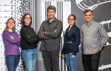 Marta Fernández, coordinadora del grau en Videojocs; Bea Martínez, cap d’estudis; Carles Sora, director del centre; Eva Villegas, coordinadora del grau en Multimèdia, i Josep Torelló, coordinador del grau en Animació.