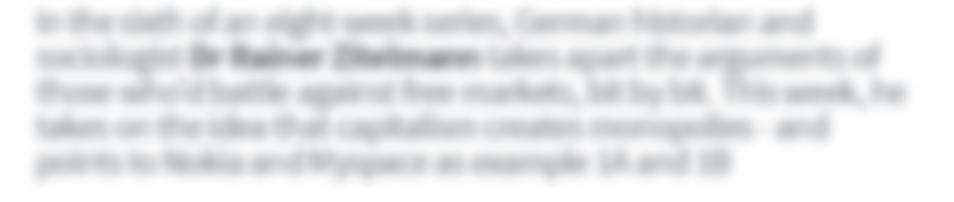 technologies they pushed the boundaries, but newer, leaner, sharper competitors found their way to the front of the queue soon enough. Dr Zitelmann contends that the reason these giants fell from their podium is the same reason they got there: good oldfashioned capitalism. He’s right,