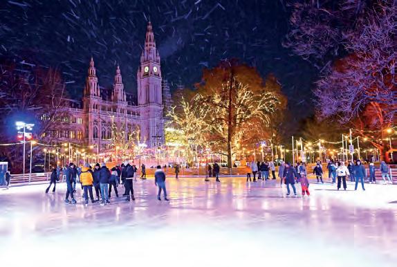 The Vienna Ice Dream turns the Rathausplatz into a glittering winter wonderland. Don’t let the cold bother you: grab your skates, slide over one of Vienna’s ice skating rinks and let it go! (p. 32)