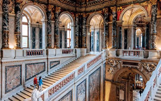 Wander through the historic center of Vienna, admire its impressive architecture, and shop in exclusive boutiques. Or simply enjoy a relaxed stroll through romantic little lanes. (p. 14)
