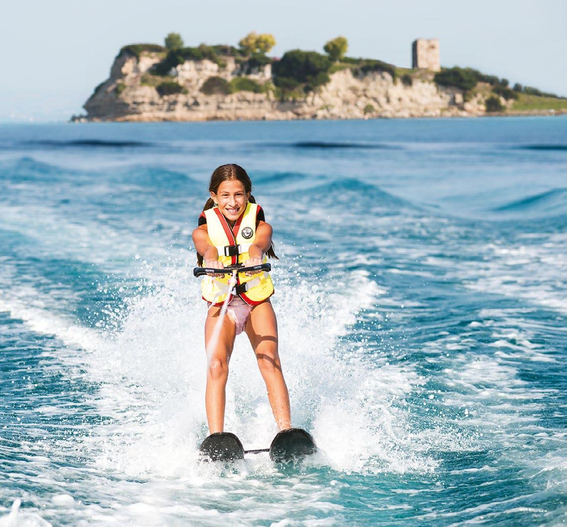 the ever so popular Deck Bar & Grill by the beach, three large swimming pools and an array of fitness and water sports activities, including the new Anemelia Aqua Park which launched last summer to kids’ and parents’ delight! Make sure not to miss the complimentary traditional Kaiki cruise to the best swimming spots nearby and the Sunset cruise on offer.