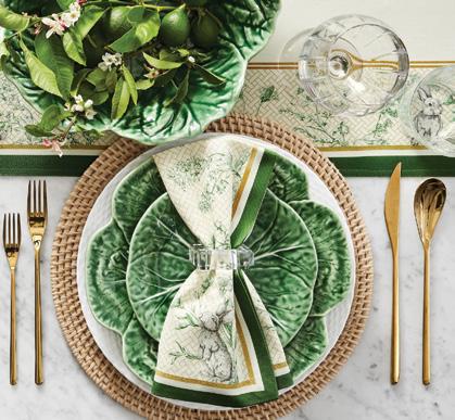 Bring a fresh spring aesthetic to the table with a charming runner that features adorable bunnies, verdant blooms and golden latticework www.williams-sonoma.ca