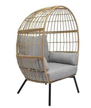 This wicker-accented egg chair is the ultimate oasis for relaxing, reading or listening to music.