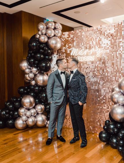 The couple ended up sharing their wedding with 35 friends and family, with Harry Rosen providing features including a champagne wall, sweets and tuxedos.