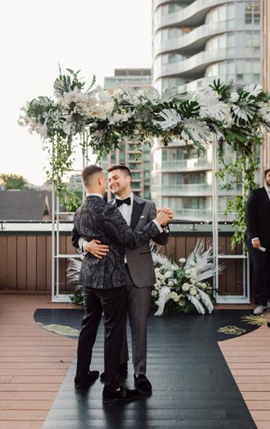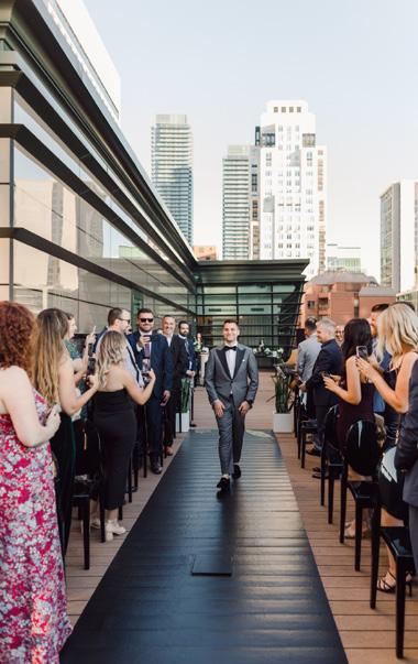 Not only that, but the wedding was held on the private patio of Harry Rosen’s flagship location in downtown Toronto, overlooking Bloor Street.