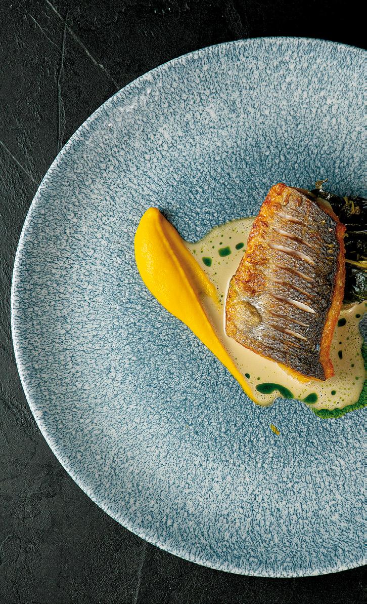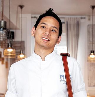 στο «Pied à Terre», όπου μαγειρεύει προσωπικά, μπροστά σε 8 καλεσμένους, ένα μενού-έκπληξη που μπορεί να περιλαμβάνει από 16-22 πιάτα, ανάλογα με τα υλικά και την εποχικότητα.