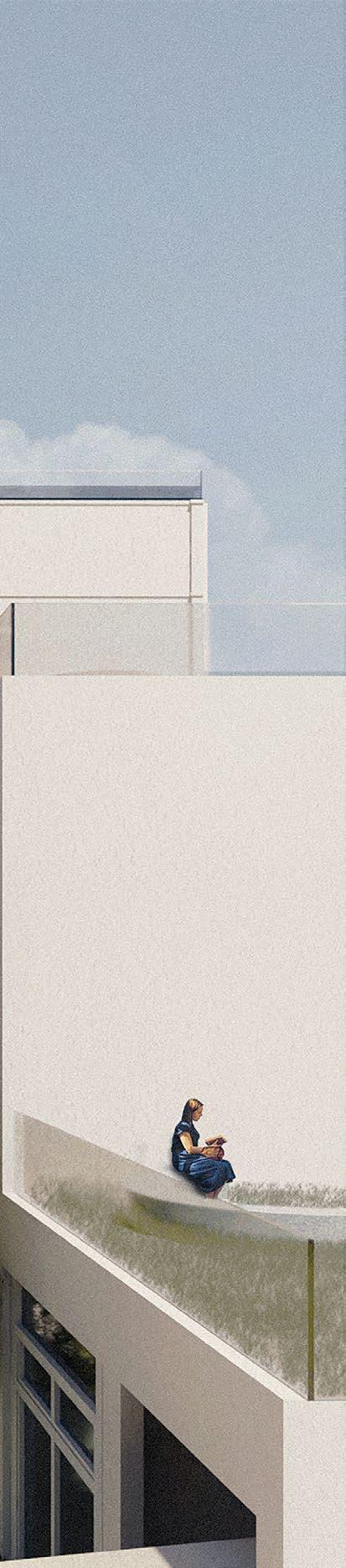 κλειστό αίθριο, που λειτουργεί ως «αυλή συνάντησης», προσφέροντας έναν χώρο