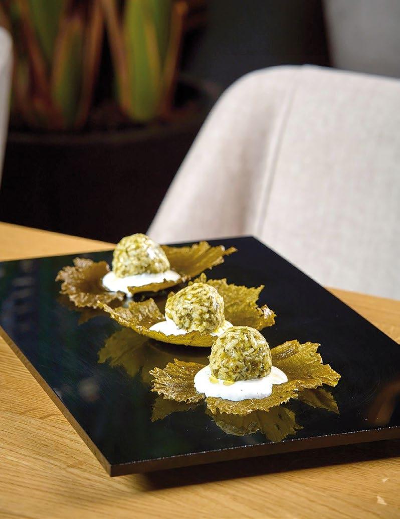 Σεβρ — ένα πιάτο ισορροπημένο και πολυεπίπεδο. Η ποικιλία από πράσινα φύλλα λειτουργεί ως φρέσκος καμβάς, πάνω στον οποίο