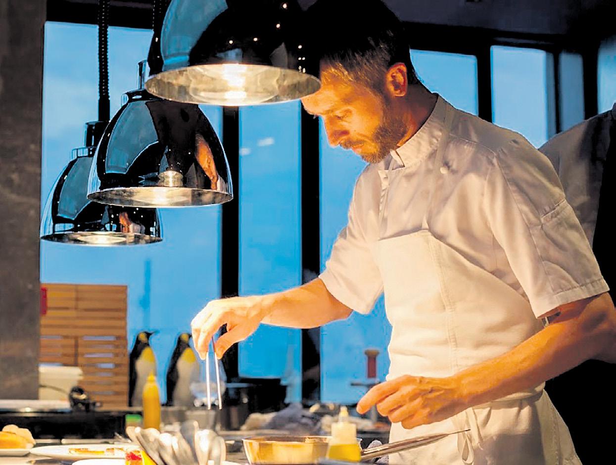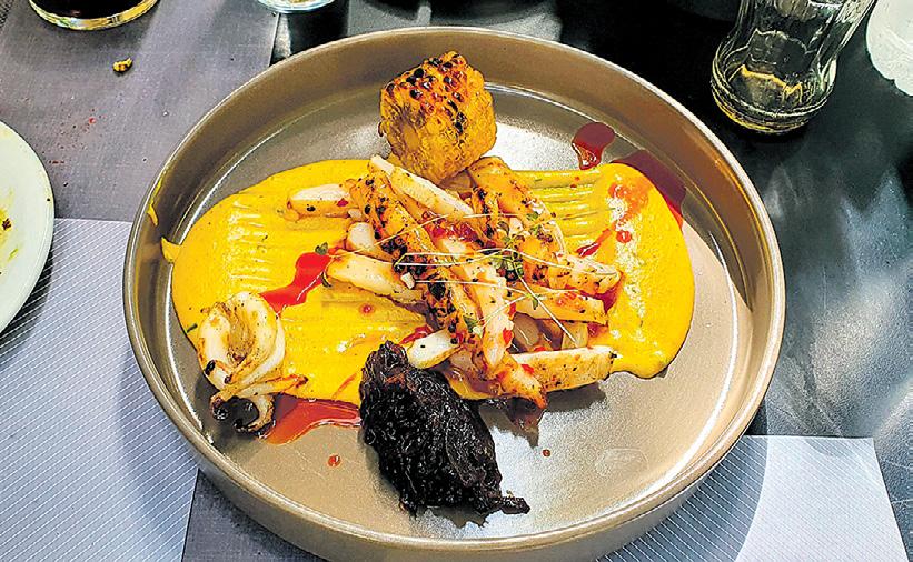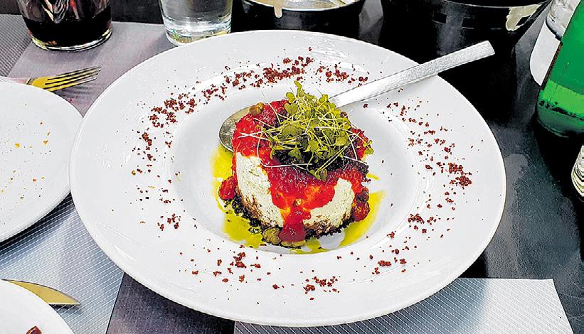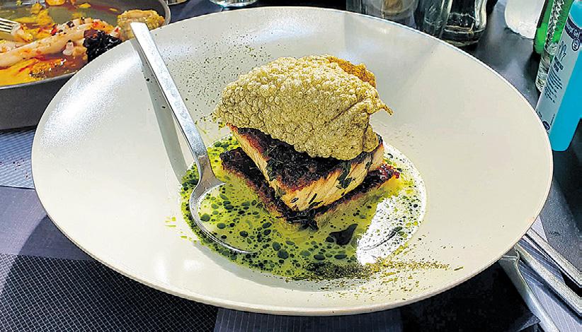 από κριθαράκι, κυδώνια και τρούφα, «ντολμαδάκι» παλαμίδας με πράσινο μήλο, σιφόν γιαούρτι και άνηθο, χτένια, ζωμός καπνιστής φασολάδας και εικονικά φασόλια από ταραμοσαλάτα, ραβιόλια λαχανικών με κατσικίσιο τυρί, jus