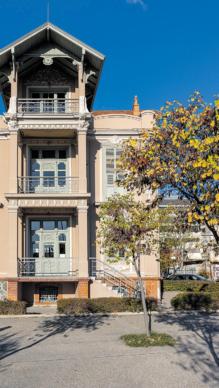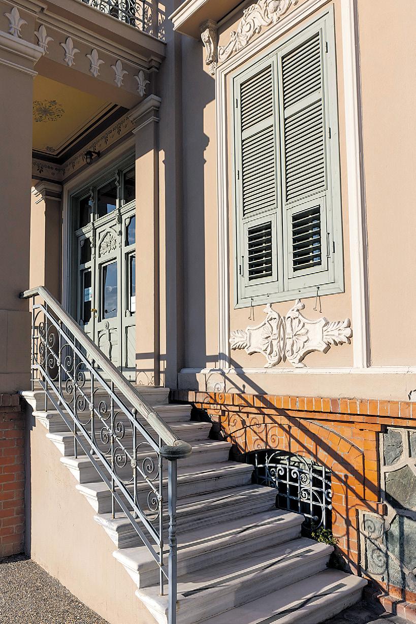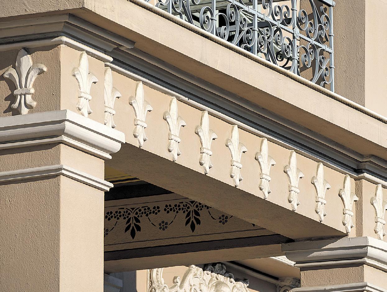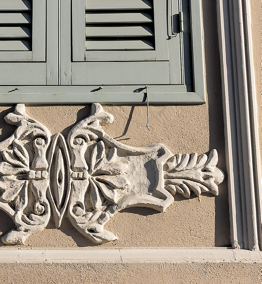 στοιχείο αποτελούν οι διαφοροποιήσεις τού ανάγλυφου διακόσμου από το ισόγειο στον όροφο και από όψη σε