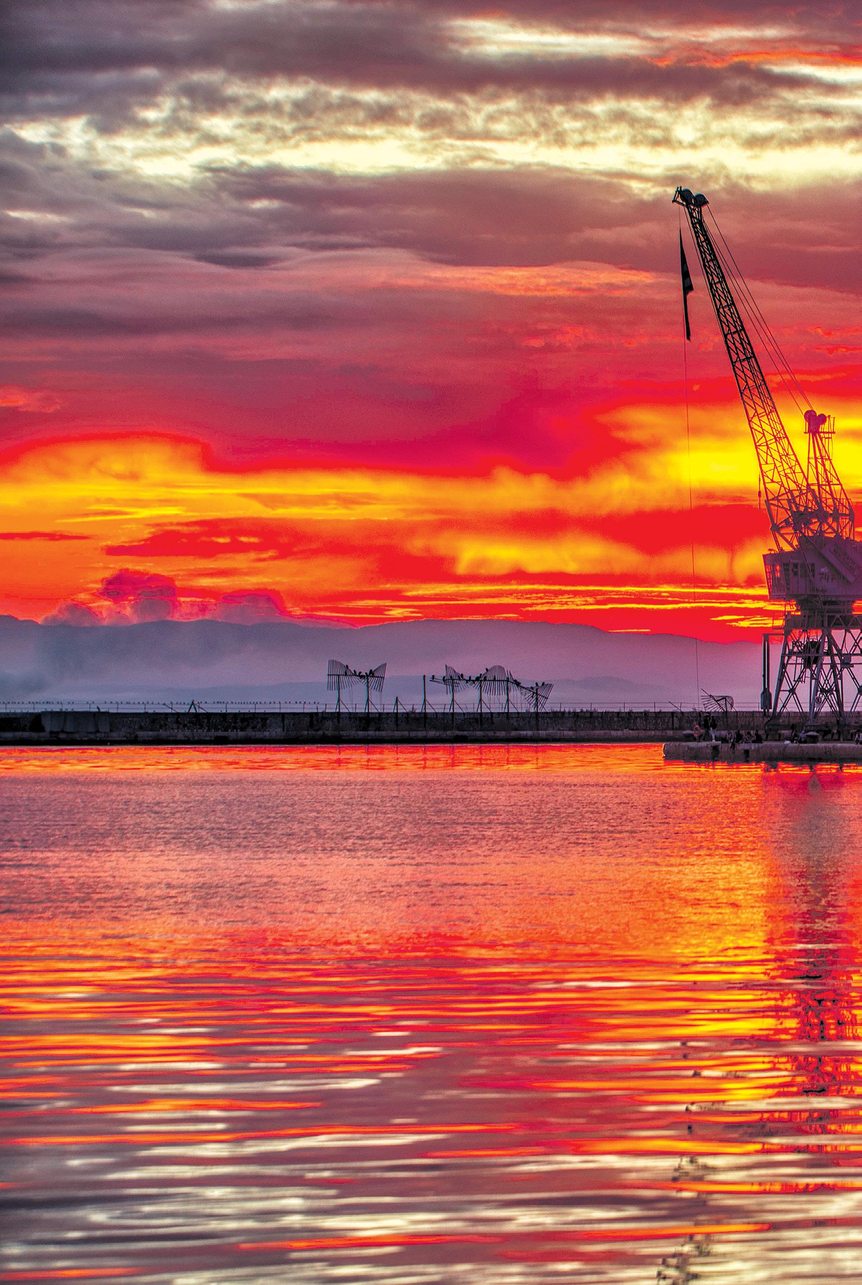 απλώνεται το λιμάνι τής Θεσσαλονίκης (περίπου στο ύψος τής τρίτης και τέταρτης προβλήτας τού σημερινού λιμανιού, πολύ