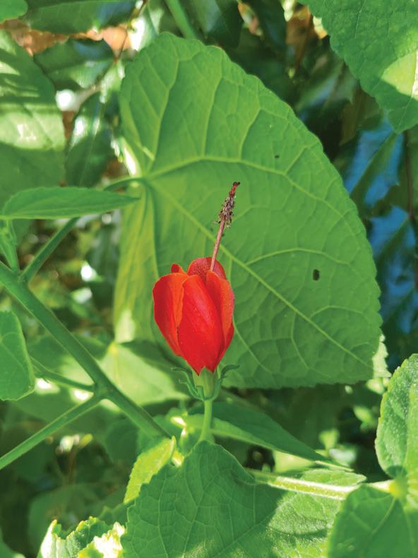 While there are autumn bulbs to give colour, the shape of foliage can also play a big part in creating an interesting garden. One plant with unusual-shaped foliage that’s growing well in my garden is wax mallow (Malvaviscus arboreus)