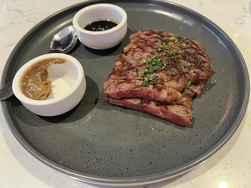 A stunning-looking dish was the Hotate, pan-seared, succulent scallops ($24, three pieces) with a sensational cashew-jalapeno emulsion and more tasty dill oil. A true feast for the eyes.