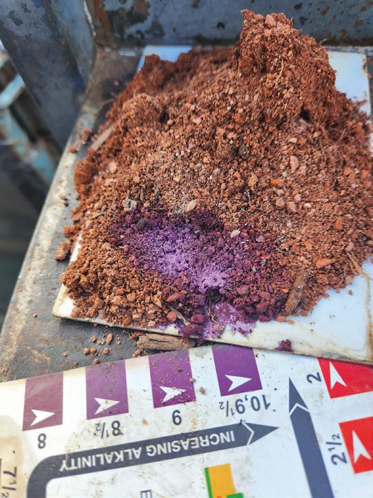 Testing the pH level in soil… most plants like the