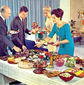 19 From which bottle is wine, water, etc, served at the table? (8)