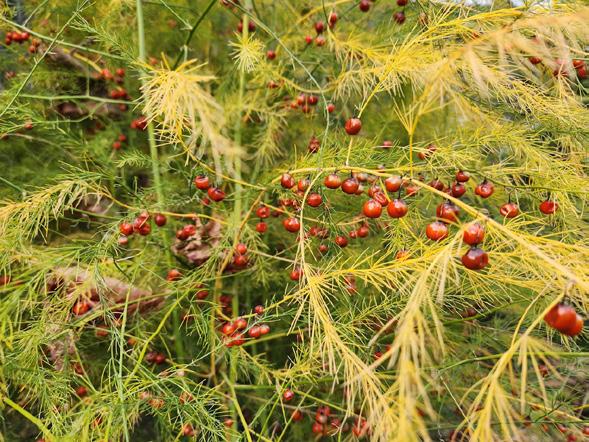 Purple varieties such as Sweet Purple grow well in Canberra, and white asparagus can be grown by mounding soil around the base of the stems to exclude light. Any frond growth from young plants or thin