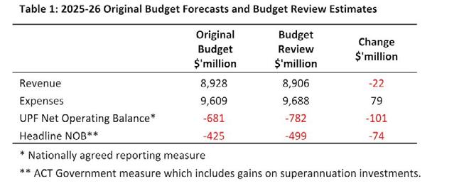 Table 1 presents the forecasts of revenue, expenses and the Net Operating Balance in the 2025-26 original budget, and the revised estimates in the Budget Review released on February 5.