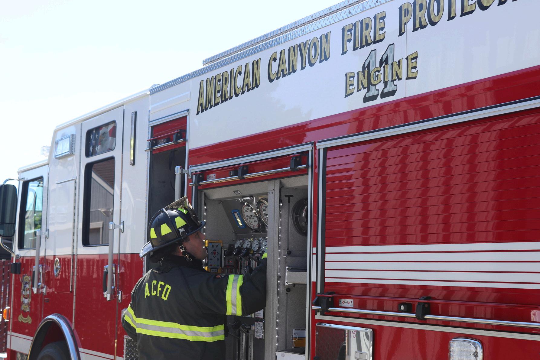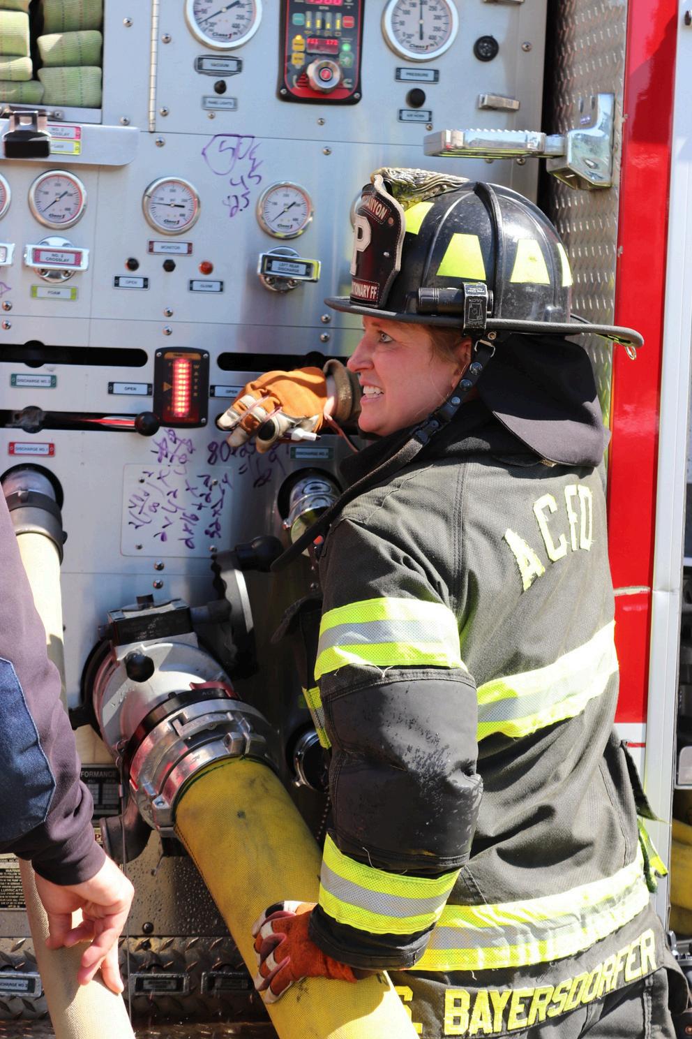 Firefighter Bayersdorfer, the first female fighter in American Canyon Fire Protection District’s history to complete probation, was on-hand to assist with a vehicle extrication demonstration and climbing the 110 foot ladder.