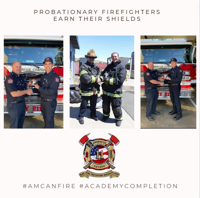 Recently, Firefighter/Paramedics Conner Alexander, Eric Hanson and Firefighters Chris Heim and Sarah Bayersdorfer successfully completed their 18-month probation period. Their dedication, commitment, and hard work have been exemplary, and we look forward to their continued contributions to the District and American Canyon community.
