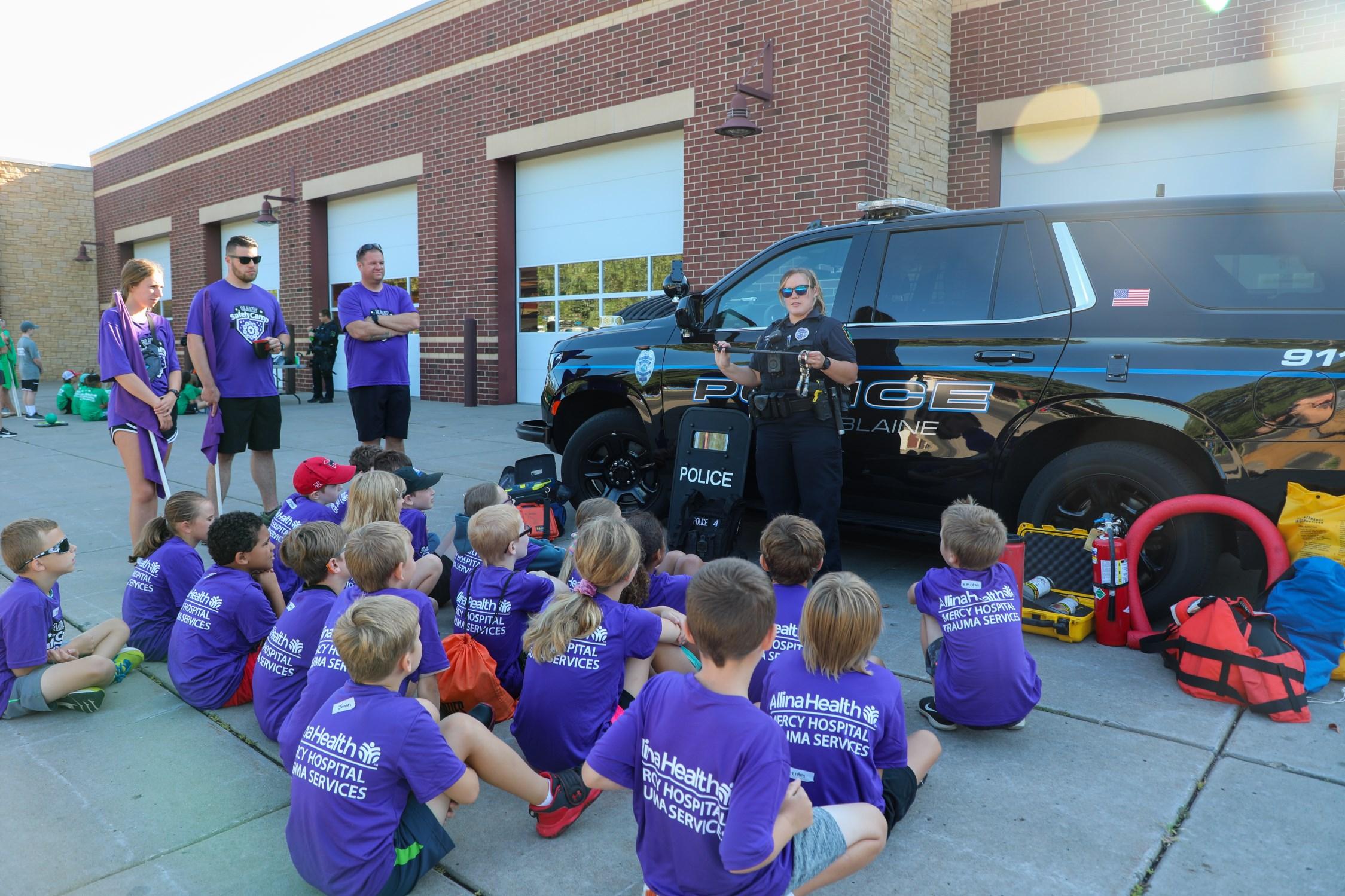 The annual Blaine Safety Camp was held in August at SBM Fire Station 3. This year 140 incoming fourth graders gathered for two days of learning and fun. This very popular event focuses on teaching kids how to be safe in a variety of situations. Blaine police officers participated as group leaders and gave several demonstrations/safety tips.