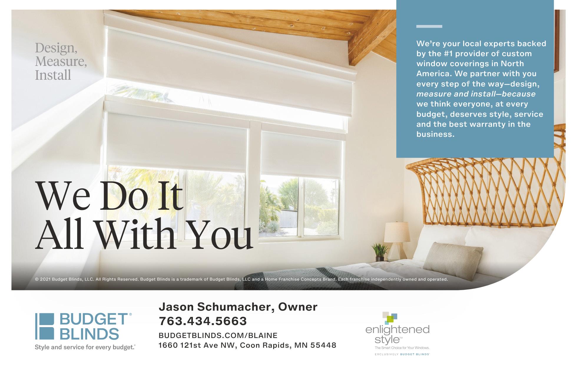 Blaine & Andover ....................... 763-434-5663 1660 121st Ave NW (See Back Inside Cover) Coon Rapids, MN 55448 budgetblinds.com/blaine
