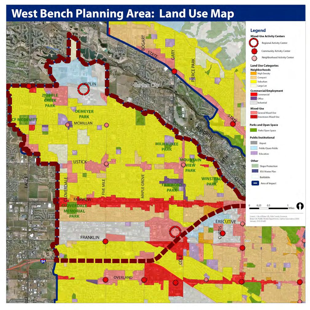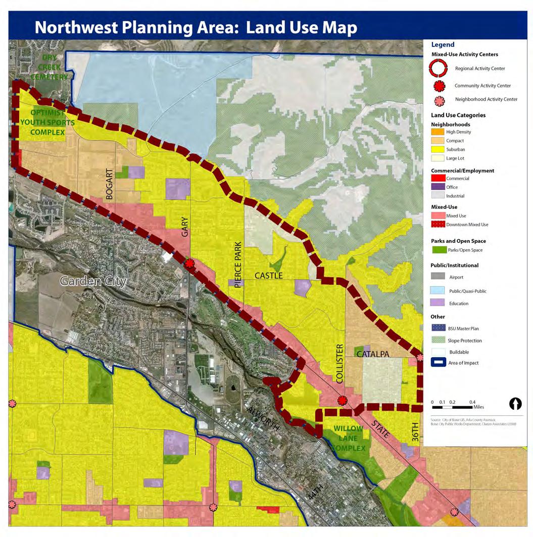 Source: City of Boise GIS, Ada County Assessor, Boise City Public Works Department, Clarion Associates (2009) October 2009 (Draft) 0 0.30.6 0.15 Miles Legend Area of Impact Mixed-Use Activity Centers Regional Activity Center Community Activity Center Neighborhood Activity Center Areas of Change/Stability 1 - Significant New Development/ Redevelopment Anticipated Parks and Open Space Other 2 - Some Infill and Redevelopment Anticipated Area of Stability 3 - Reinvestment in Established Infrastructure Needed Slope Protection Degree of Anticipated Change