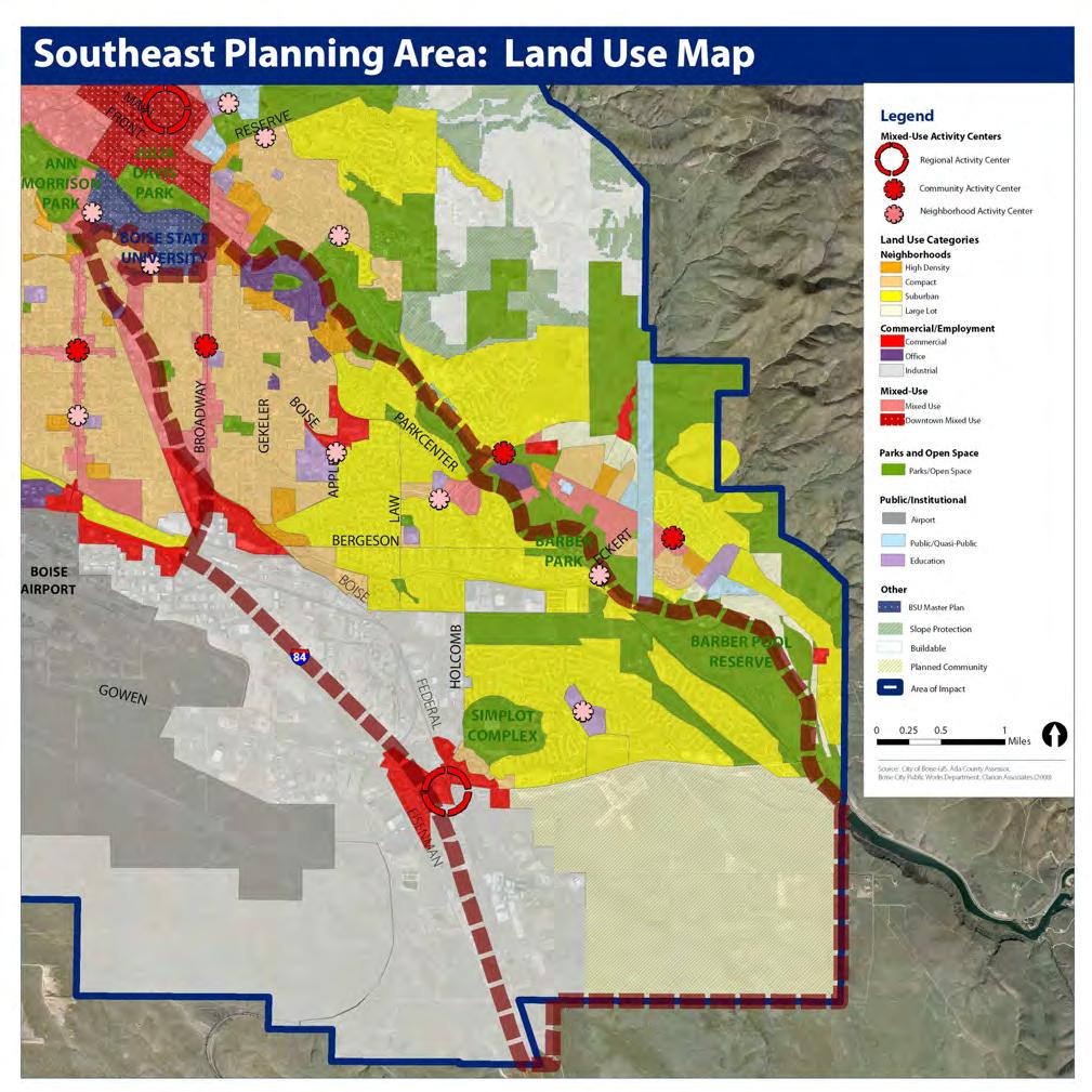 Source: City of Boise GIS, Ada County Assessor, Boise City Public Works Department, Clarion Associates (2009) October 2009 (Draft) Legend 0 0.3 0.6 0.15 Miles Area of Impact Mixed-Use Activity Centers Regional Activity Center Community Activity Center Neighborhood Activity Center Areas of Change/Stability 1 - Significant New Development/ Redevelopment Anticipated Parks and Open Space Other 2 - Some Infill and Redevelopment Anticipated Area of Stability 3 - Reinvestment in Established Infrastructure Needed Slope Protection Degree of Anticipated Change