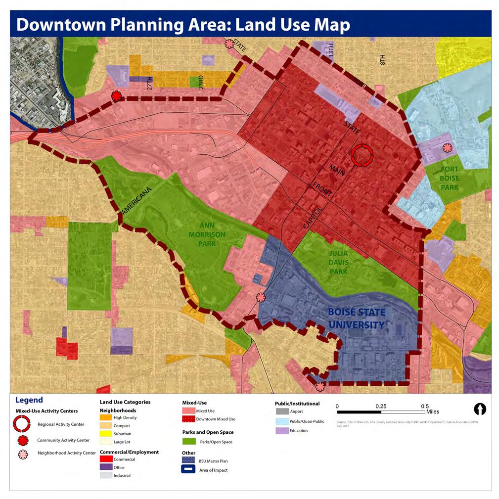 Source: City of Boise GIS, Ada County Assessor, Boise City Public Works Department, Clarion Associates (2009) October 2009 (Draft) 0 0.25 0.5 0.125 Miles Legend Area of Impact Mixed-Use Activity Centers Regional Activity Center Community Activity Center Neighborhood Activity Center Areas of Change/Stability 1 - Significant New Development/ Redevelopment Anticipated Parks and Open Space Other 2 - Some Infill and Redevelopment Anticipated Area of Stability 3 - Reinvestment in Established Infrastructure Needed Degree of Anticipated Change