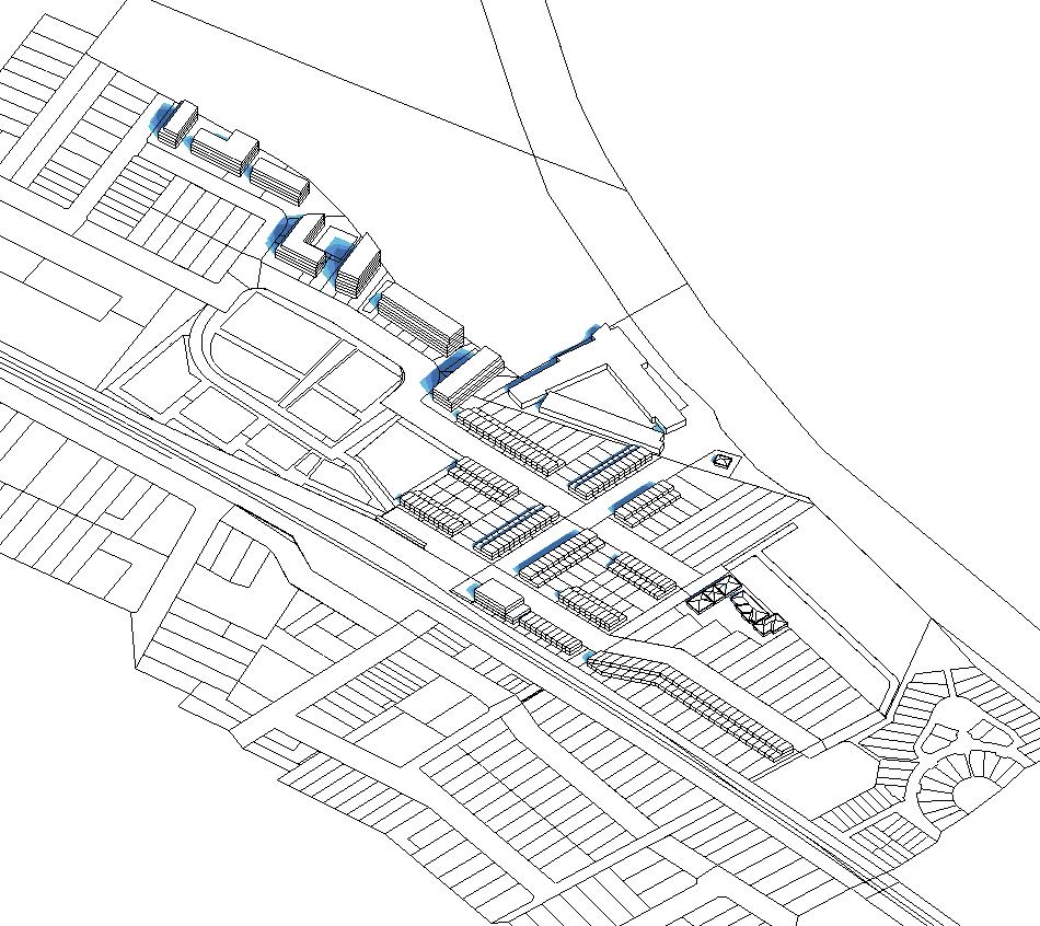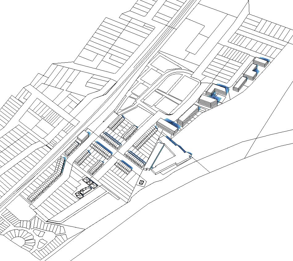 The building heights are arranged in a way to minimise impact on public parks, low scale residential areas, schools and heritage buildings.