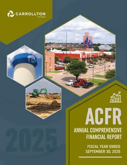 The following pages provide easy-to-read highlights from the fiscal year 2025 Annual Comprehensive Financial Report (ACFR). Visit cityofcarrollton.com/finance to view the full report.