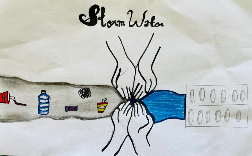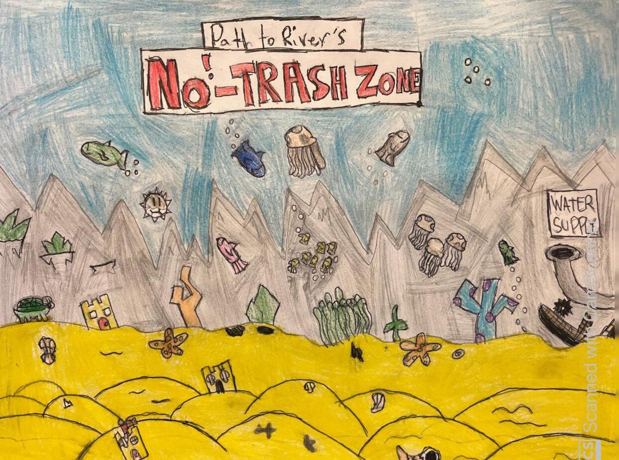 I hope my drawing inspires people to stop littering and polluting our waterways. Sahana, 6th grader at J N Fries