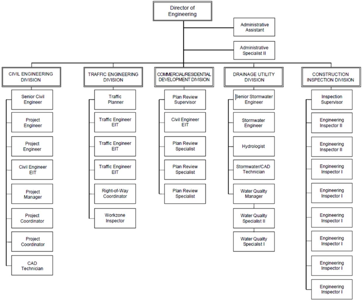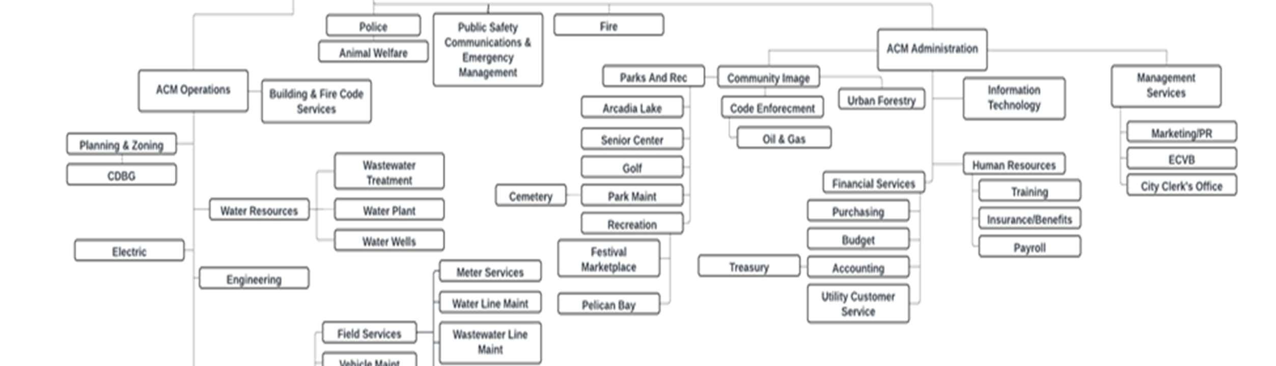 Division – The smallest organizational unit budgeted is the division. The division indicates responsibility for one functional area, and in many cases these functional areas are put together to demonstrate a broader responsibility. When this is done, the divisions are combined to make a department. For example, the Street Department is comprised of Street Maintenance, Street & Alley, Signs and Signal divisions.