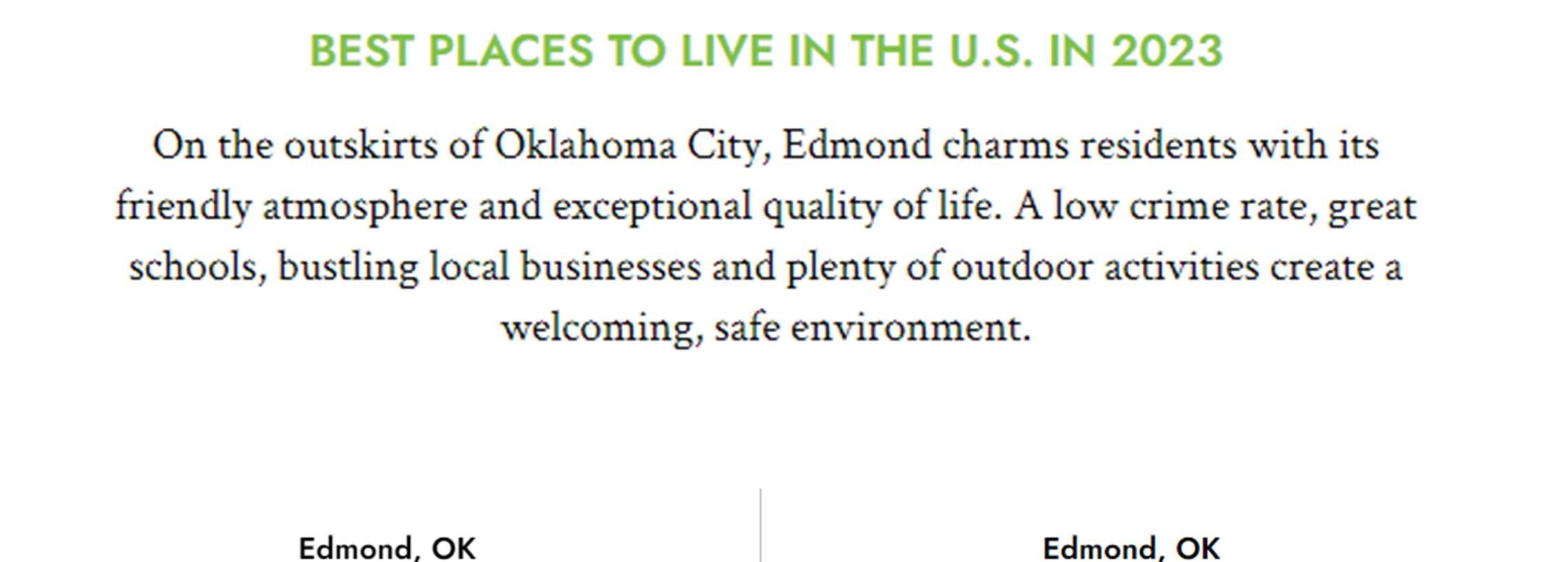 Government Finance Officers Association of the United States and Canada (GFOA) presented a Distinguished Budget Presentation Award to City of Edmond, Oklahoma, for its Annual Budget for the fiscal year beginning July 01, 2022. In order to receive this award, a governmental unit must publish a budget document that meets program criteria as a policy document, as a financial plan, as an operations guide, and as a communications device.