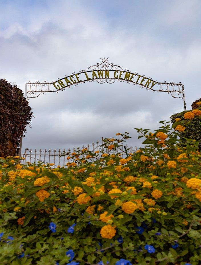• Gracelawn Cemetery stone fencing at Danforth and Broadway