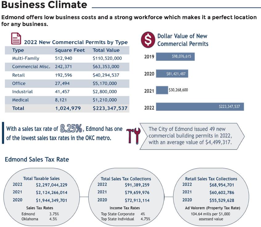 The first Introductory section give you insight of who we are, where we are and a little history of our City. The City’s organizational chart can be found here as well as a list of our City Council. Edmond at a Glance page gives a quick overview of our great city. We included this year, a new section for information if youwould like to donateto our Veteran’s Memorial, our Luminance program or Art inPublic Places.