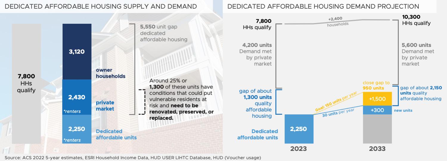 The infographics featured at right are selected from a larger series of posts that highlighted findings from the assessment’s market study and results from the Housing Needs Survey. The infographics were shared to the City’s website, Twitter, Instagram, and Facebook over the course of the project.