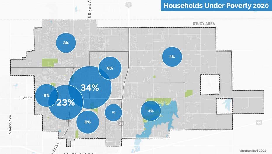 Housing stock and home values vary greatly from neighborhood to neighborhood in Edmond. This has important implications not only for the housing options available for Edmond residents, but also for tailoring and targeting the strategy tactics and resources outlined in this assessment. Not all Edmond neighborhoods will need the same types of investment and support. Poverty is concentrated in Edmond’s core areas, and existing programs are insufficient to meet the needs of the community’s cost-burdened households. Preservation of lower-cost housing will help reduce poverty. Currently, rental housing is also concentrated in Edmond’s core areas,