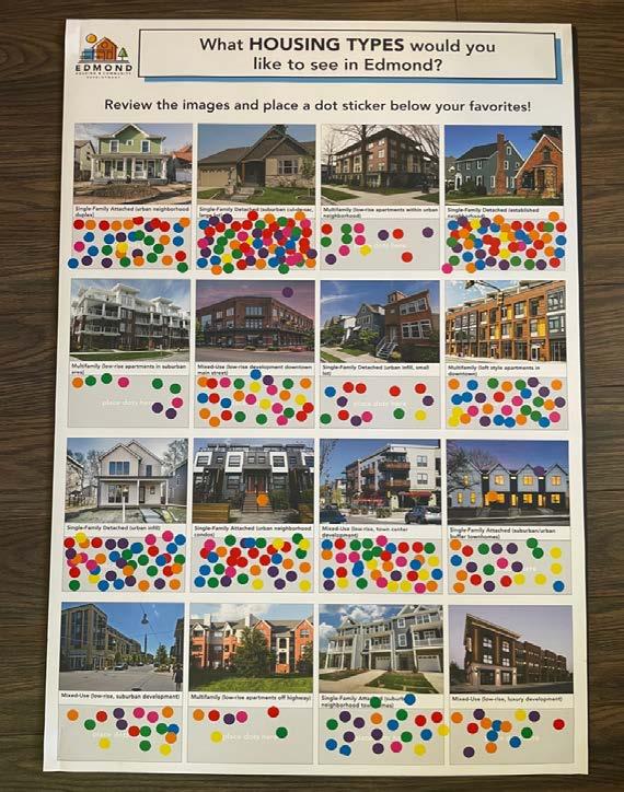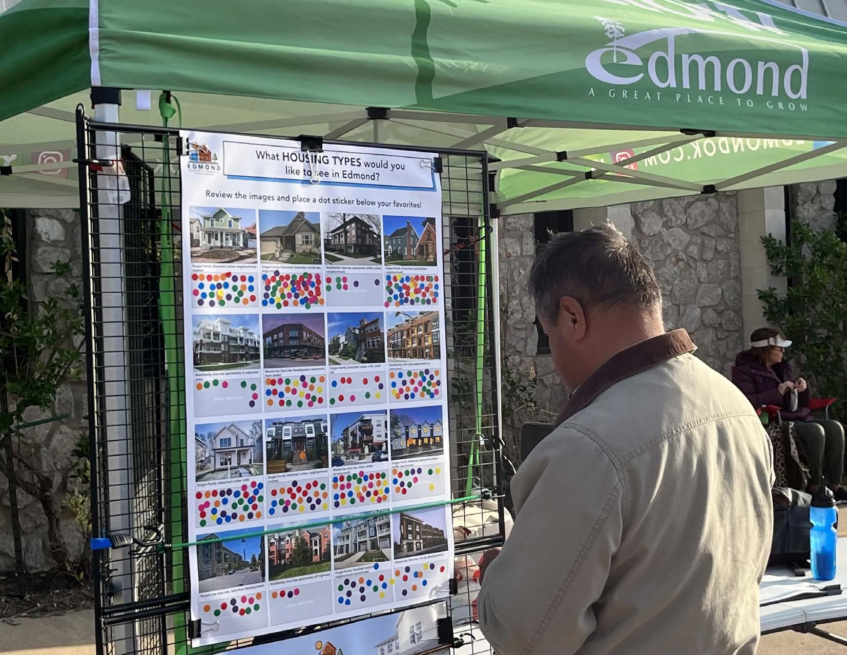 At the pop-up events, the project team displayed two boards: a Housing Preference image board that asked,“What housing types would you like to see in Edmond?”, and a Post-It note board that asked, “If you could change ONE thing about housing in Edmond, what would it be?”