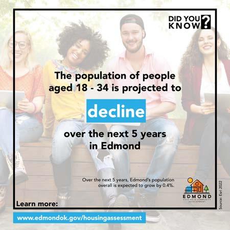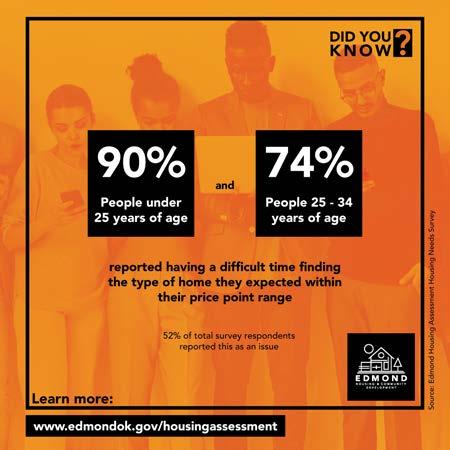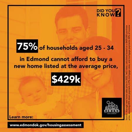 percent of Edmond households cannot afford that purchase price. Housing in Edmond is especially unattainable for young people: even Edmond’s median housing value of $282,000 is unaffordable to 60 percent of households aged 25 to 34.