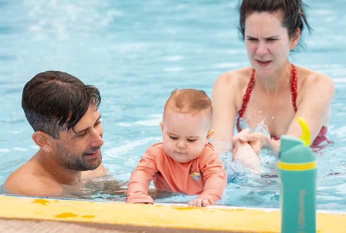 alospadresocuidadoresconmétodosquelosprepareny ayudenaformarhábitosdeseguridadenelagua,loscuales setransformaránenhabilidadesdeautoconservacióny natacióncuandoelniñoestélistoensudesarrollo.Losbebés debenusarpañalesdenataciónreutilizablesconajuste elástico, ver página 118.