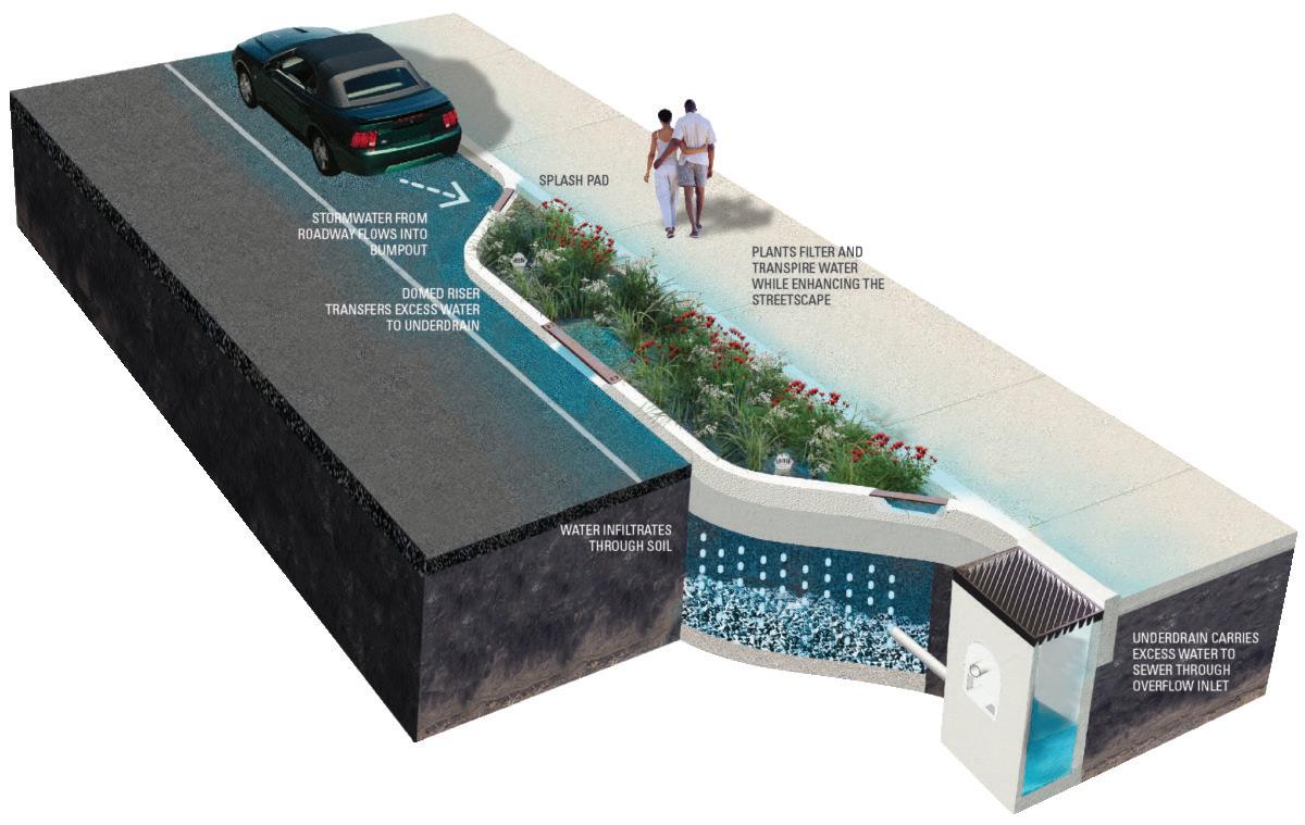 The ecological functions of the curb extensions along with the ability to slow down traffic presents itself as a potential tool.