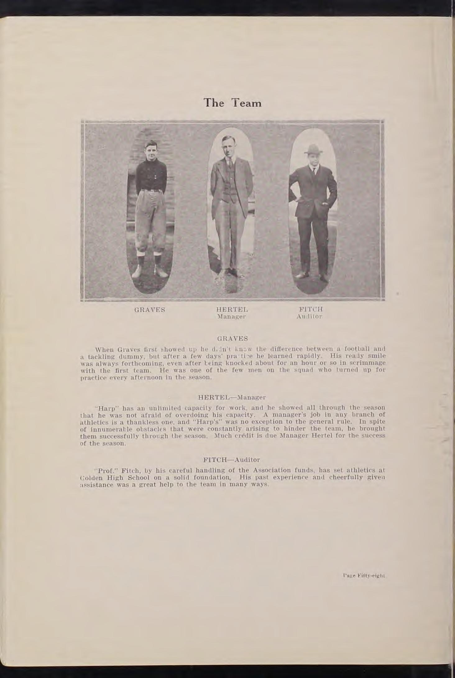 Before a re\ i(-'" i.., 111acle o f th<> (1ol<l<·n II 1g-h ~ c hool fo o tball ..,pa:--o n of 19 1.1. 1t j.., noth in g hut fair to the 1nen ,Yho 1nad e np the tean1 to explain so rn e of th<> cirrt1111..,tance, nncl(->r "hieh they pla.' ed. Tiu -, 1, n o t g1Yen a-, an uhbi. nor a , an rxru-..e for th e rr ~u] t -... but rath er that al1 n11ght under,tancl beforr j11clgn1ent j.._ pa s:-.ed.