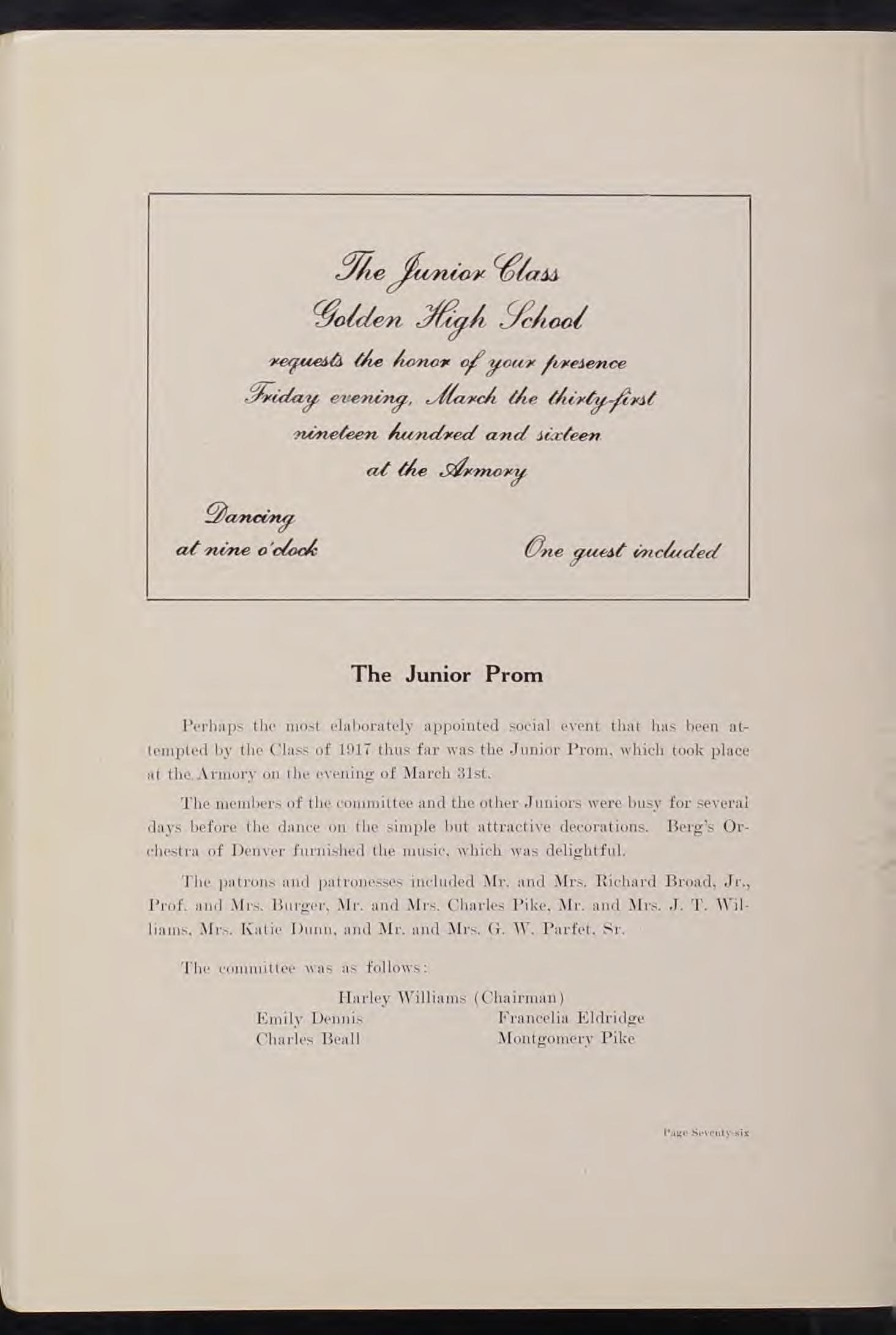 IN ALL Pl-IA E OF or-n SC II OOL LIFE, \YE. THE CL.\ , OF 191G, \Fl< ' EC'TIO:X -\TELY ., ,, DEDICATE TifI S FIR T 'GOLD P \ •