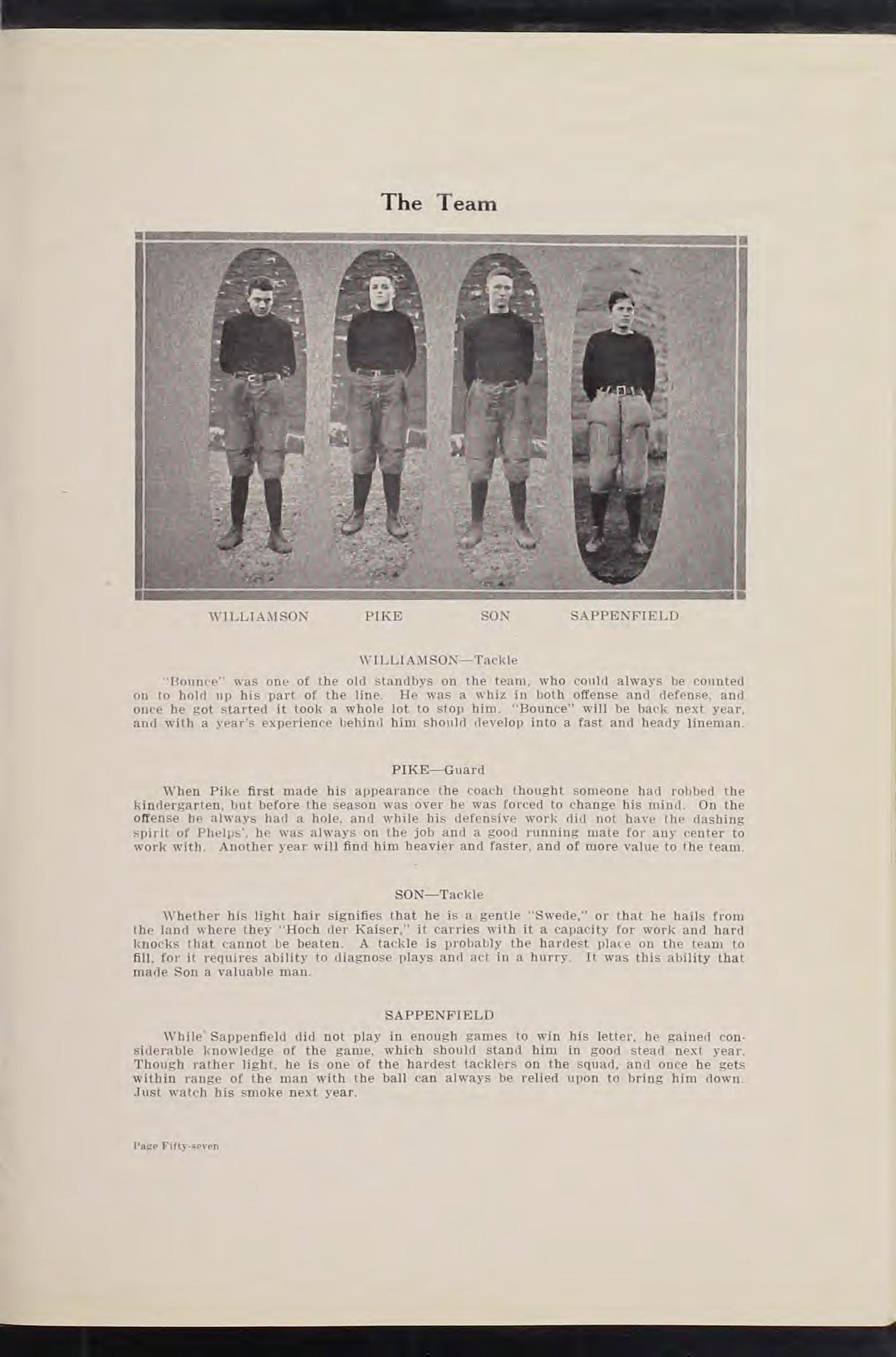 1·11llegP c·la-..--.. ' J'lu·.v hacl a con1liination of playpr-.. that hacl hecn \York1ng to 1 rPtlH•1· fo1· p,1•ral \ ' l':ll'.., a1Hl th(• IH•npfit of -..('\Pl'al <Y.tllH' "' l>Phind thPnl. II o,Y. ,•\('!". th,•rt• i all 1111k1111,,n q11antH~ 1n footliall. ~OllH' c·all it pc>p:' other '·fi!!ltl "111·r, l' :111,l , :u·io11-- othc•r 11a111<•~ 11101"<' approp11atl' to the> "-.porting p:H!l... than :t lii!.d l --l'linol Hlll\11,il. ·r1ii .. 1111kt111\\'ll <Jll,Ultlt) \\":\ ... in e,id<'l1('(' i11 our fir,( !!:llllf' 011 t lie• ltl)IJH' fil'l,l. ' I'lH · llll'II fo11!!ht likt> , PtPl',\ll ancl a-. ,\