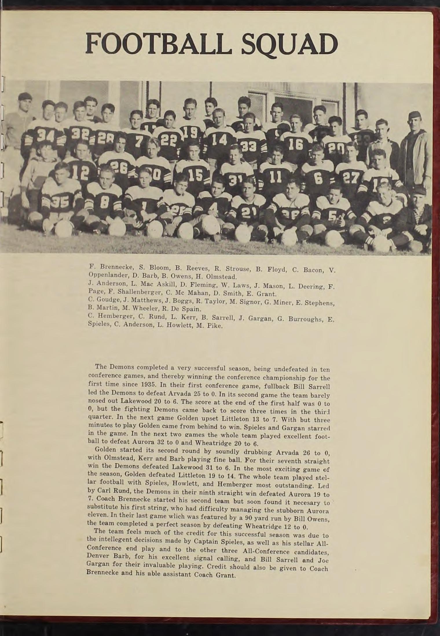 Nov. 19 State Football cha mpi on s h i p playoffs begin without Golden, du e to a Su bu rban League agre e m ent. N ov . 24 Demons c lose f ootball s2ason undefeated by beating W heatridge 12 to 0.