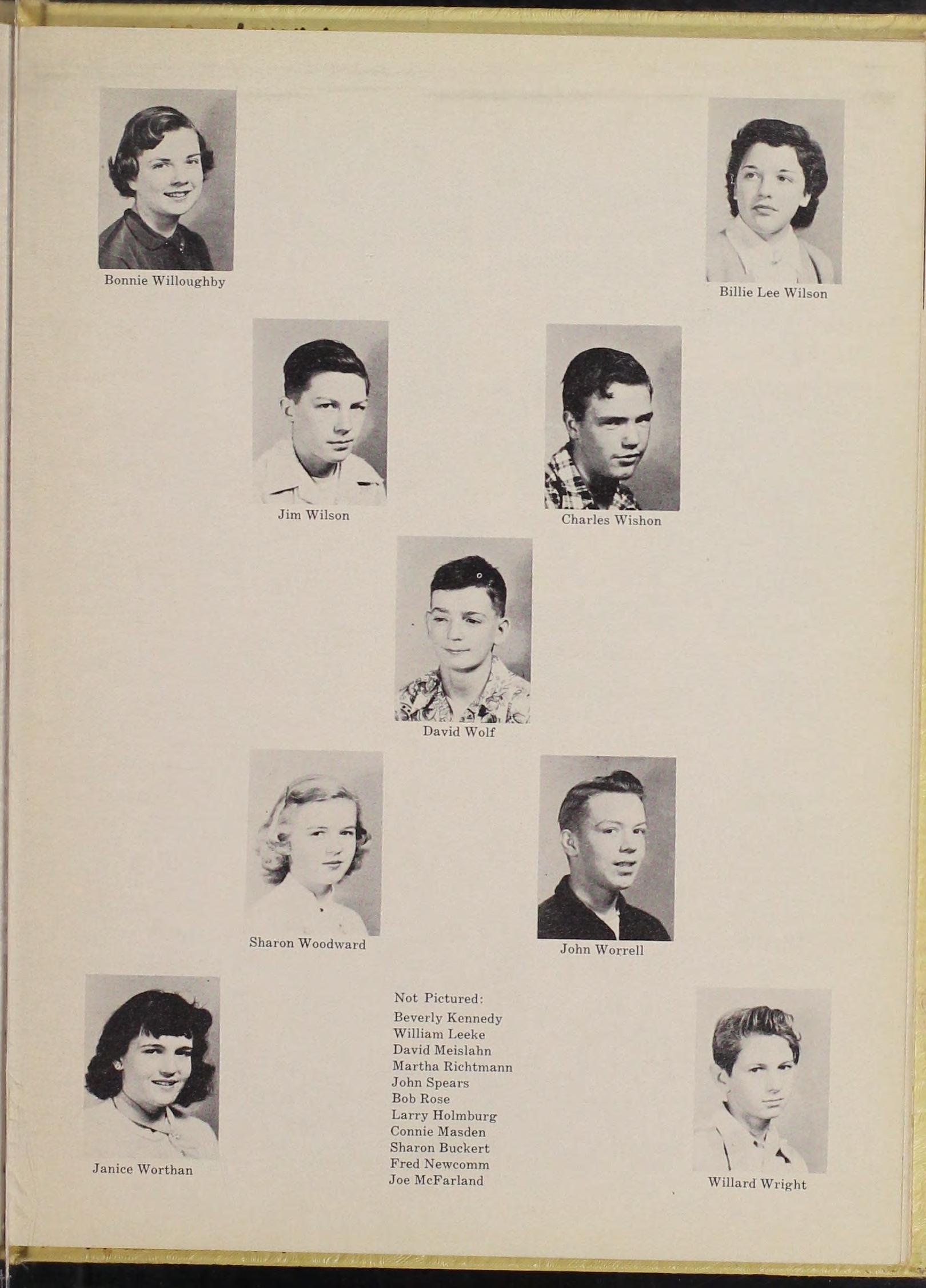 Second Row: Coach Lewis, Dave Stafford, Bill Carpe n ter, Tex Hensley, J erry Witt, Ross Rush, Cha rl es De Col a , Ronnie Barnard, Joe Stewart, Ronald Bettinger, LeRoy Banks, Paul Harris, an d Coach Eaton.